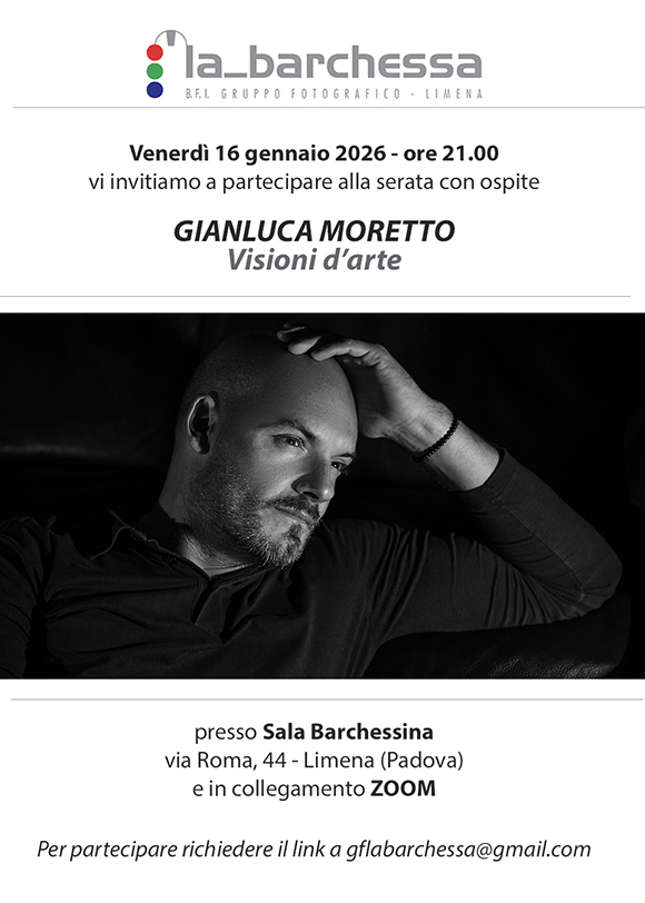 Venerdì 16 Gennaio 2026 alle ore 21.00 abbiamo il piacere di ospitare Gianluca Moretto che ci presenterà "Visioni d'arte".