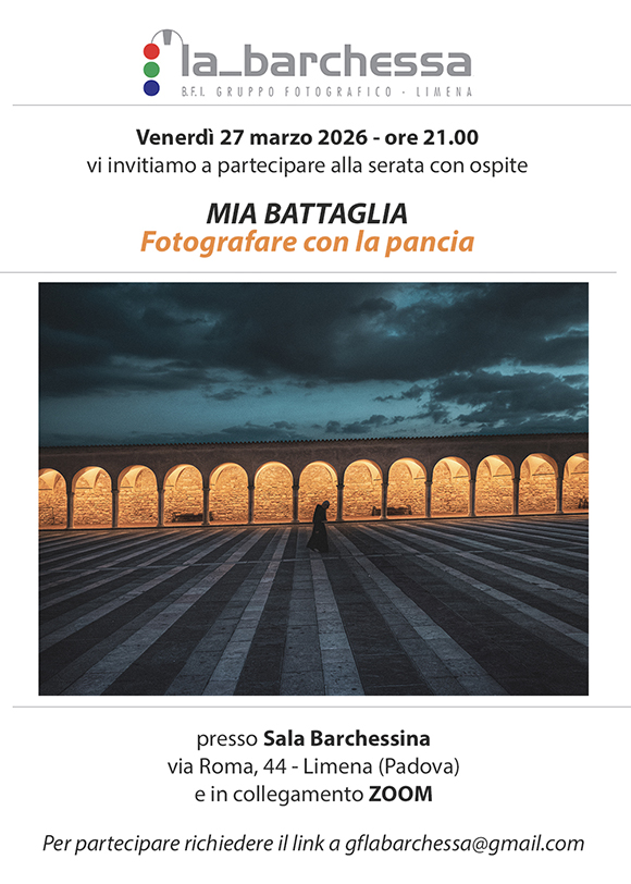Mercoledì 21 gennaio 2026 si è tenuta la prima lezione del Corso di Fotografia organizzato dal Gruppo fotografico La Barchessa in collaborazione con il Comune di Limena, che si svolgerà in 8 lezioni dal 21 gennaio al 11 marzo 2026.