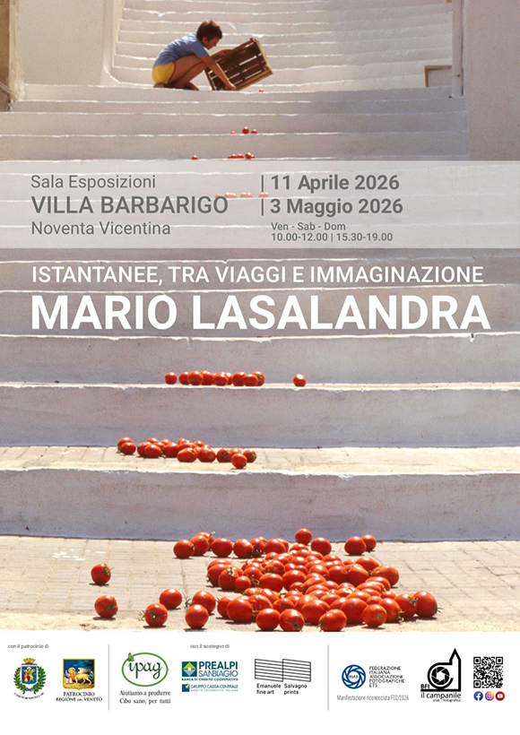 25 Aprile (Sabato) - Uscita di gruppo per visione mostra Mario Lasalandra - "Istantanee, tra viaggi e immaginazione" c/o Villa Barbarigo, Noventa Vicentina (da confermare).